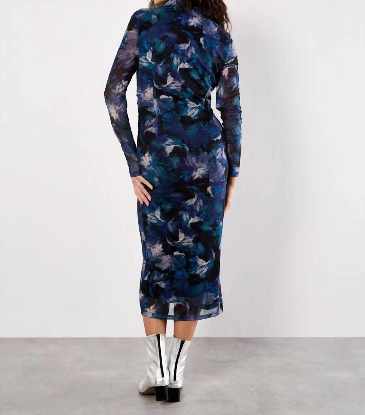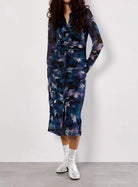 Floral Mesh Ruch Midi Dress