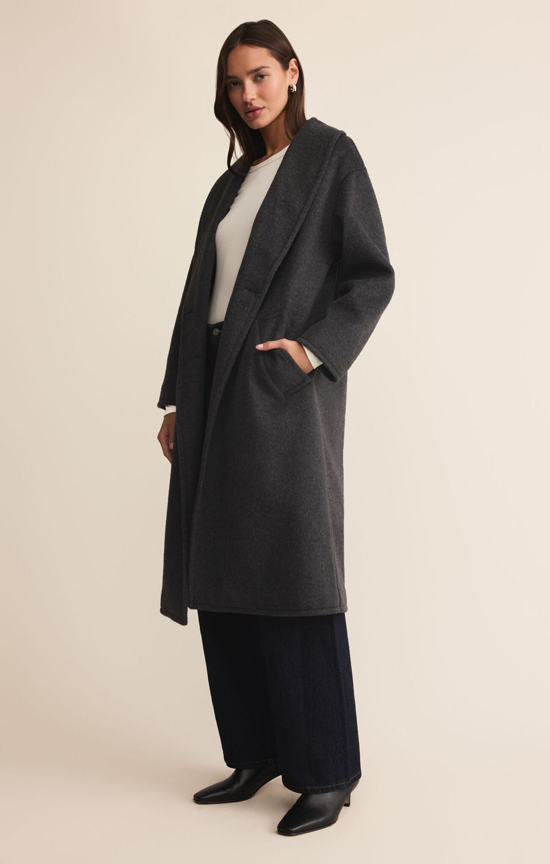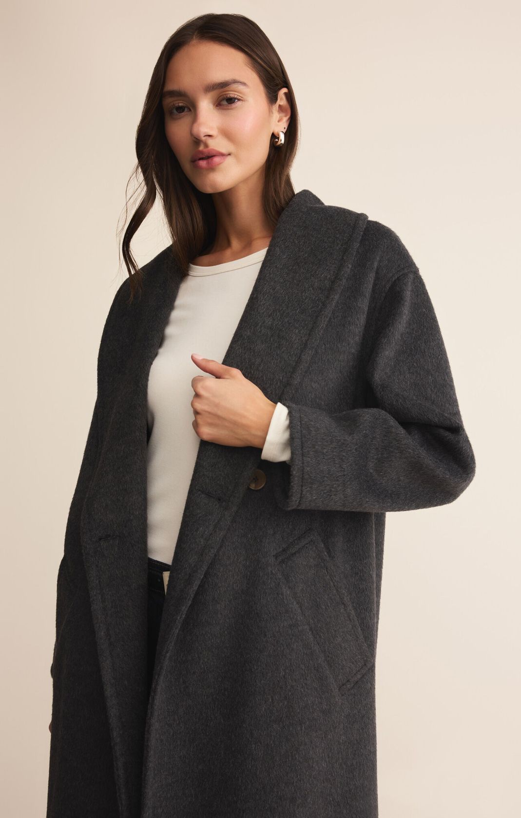 Effortlessly elegant and timelessly versatile, The Signature Coat is your go-to layer for every season. Crafted with a relaxed silhouette that moves with you, this piece bridges the gap between casual comfort and refined style. Perfect for layering over your favorite pieces, it brings an understated sophistication to any outfit—whether you're wandering through the city or settling into a cozy evening. A wardrobe essential that feels like a second skin.
