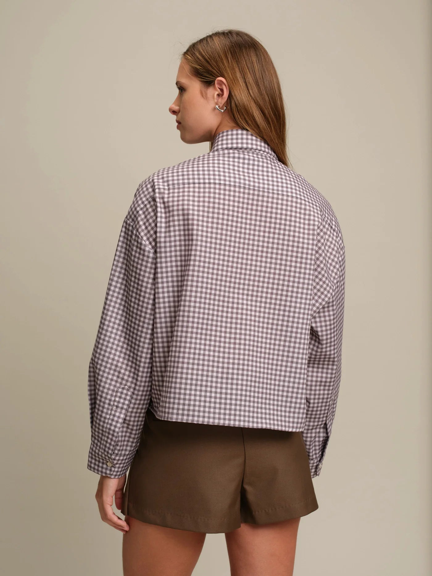 The Lance Shirt is a breezy essential for effortless style. Crafted from 100% cotton, this cropped button-up features a relaxed silhouette with a classic collar and charming tan and white check pattern. Perfect for layering or wearing solo, it brings an easy, laid-back vibe to any wardrobe. Pair it with high-waisted bottoms for a timeless look that feels both casual and put-together.