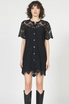 The Marquette Dress features lace detailing with short sleeves for a romantic, laid-back vibe. The airy silhouette drapes beautifully, making it perfect for layering, casual gatherings, or those moments when you want to feel gracefully put-together without trying too hard. A versatile piece that transitions seamlessly from day to night.